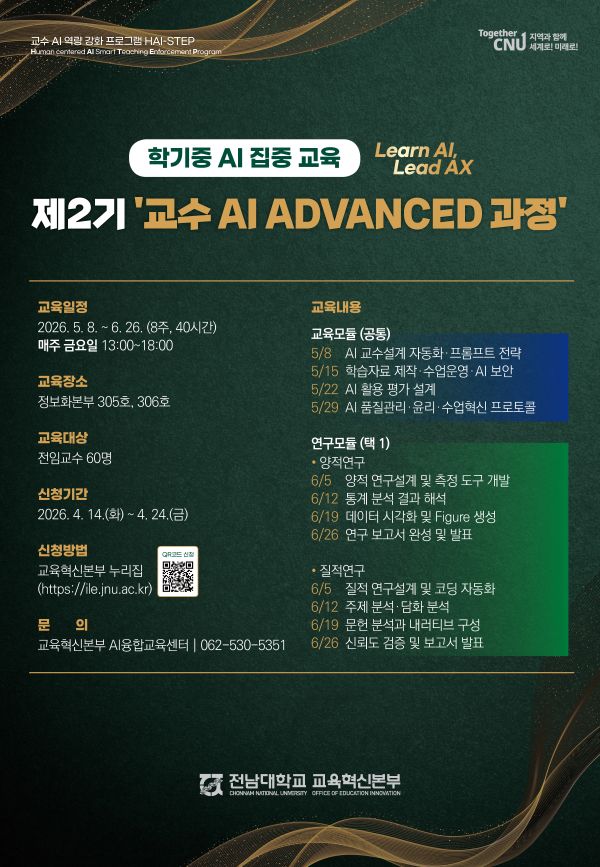 [행사&축제]2026 전남대 518 캠퍼스 마라톤대회[교양&강연]2026 전남대 518 캠퍼스 마라톤대회[CNU영상]학점관리 졸업 요건 한눈 정리[CNU영상]한 학기 완벽 클리어 로드맵[CNU영상]캠퍼스 핵심공간 TOP 5