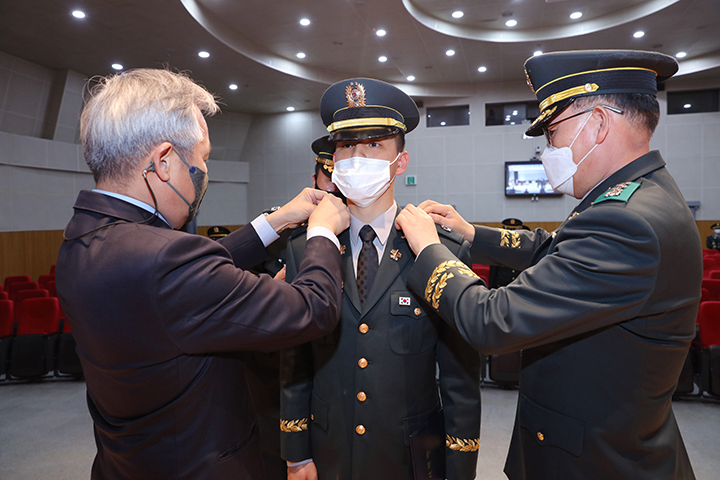 학군장교 임관식은 국방부 장관 주관으로 충북 괴산에서 열려왔지만, 이번에는 ‘코로나 19’로 인해 전국 117개 학군단에서 자체적으로 진행됐다. 문재인 대통령이 축전을 보내 이들의 임관을 축하했다. 학부모...