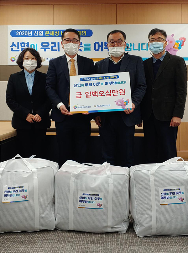 전남대 신협(이사장 조경오 학생처장)은 신협사회공헌재단 창립 2주년을 맞아 최근 한 달간 진행된 ‘온(溫)세상 나눔 캠페인’의 일환으로 이같이 기부금품을 전달하고, ‘코로나19’에 기온까지 떨어지면서 움츠러들기 쉬운 계절에 학생들이 용기와 희망으로 어려움을 이겨내고 학업에 정진해 줄 것을 당부했...