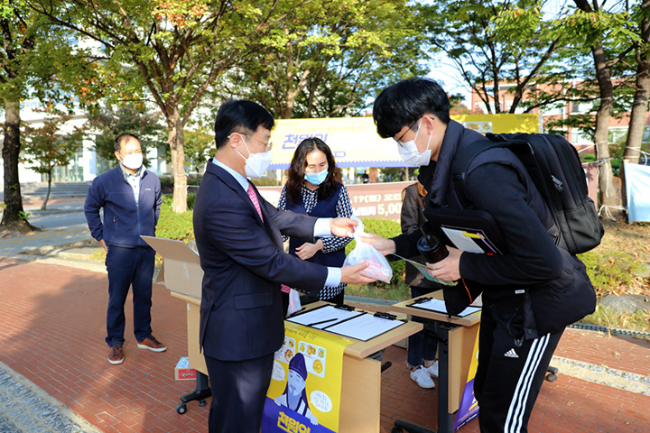 전남대와 동창회, 민주동우회는 오는 10월 19일 오전 8시부터 9시까지 1시간 동안 정문, 후문, 공대쪽문, 예대 쪽문 등 4곳에서 등교하는 대학(원)생 가운데 선착순 2,000명에게 5,000원권 무료이용권을 배부하는 ‘후배들아 힘내라’ 행사를 가진다.