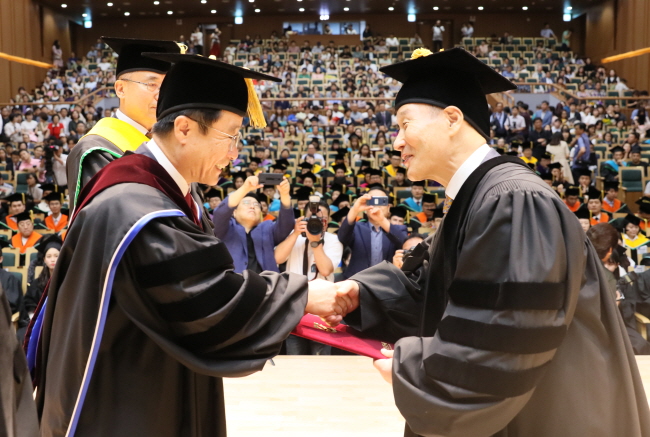 정병석 총장을 비롯해 교수, 직원, 학생, 졸업생 가족친지 등 1천여명이 참석한 이날 학위...