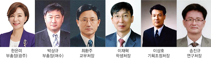 한은미 부총장(광주)·박상규 부총장(여수), 최환주 교무처장·이재혁 학생처장·이상호 기획조정처장, 송진규 연구처장은 유임정병석 총장 2기 본부 보직교수 8월 1일자 인사