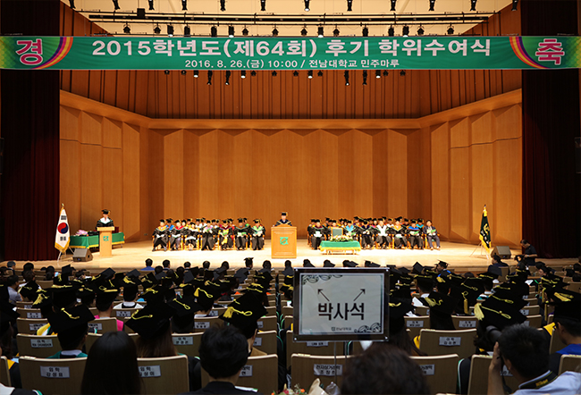전남대학교(총장 지병문) 2015학년도 후기 학위수여식(광주·여수 캠퍼스 통합)이 26일 오전 10시 교내 민주마루(구 대강당)에서 열린다.