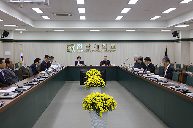 거점 국립대학교 총장협의회는 10월 16일(금) 오후 전남대학교 대학본부 1층 대회의실에서 2015년 제4차 회의를 열고 교원성과급적 연봉제 개선, 2016년 강사법 시행에 따른 대응방안 등 당면 현안을 논의했다.
