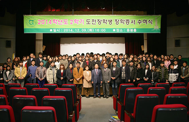 전남대학교는 지난 2008년부터 학업성적 위주의 평가방식에서 벗어나 도전정신이 투철하고 진취적인 학생들을 ‘도전장학생’으로 선발해 격려하고 있다. 이번 2014학년도 2학기 150명을 포함, 지금까지 2,210명이 도전장학생으로 선발돼 소정의 장학금을 지급받았다.