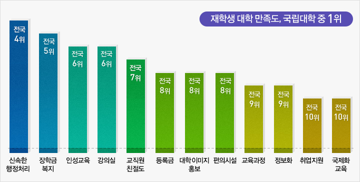 전남대학교 학생들은 모교에 대한 자부심이 매우 높은 것으로 나타났다. 전남대는 최근 신입생과 재학생을 대상으로 대학생활 전반, 입학 및 전공 선택, 진로 및 취업 준비도, 교육과정 만족도 등에 관한 실태조사를 실시하고, 그 결과를 발표했다. 이에 따르면 전남대 재학생 10명 중 6명(61.7%)이 “전남대생으로서 자부심을 갖고 있다”고 답했으며, 신입생은 10명 중 7명(71.4%)이 자부심을 느끼는 것으로 나타났다.
