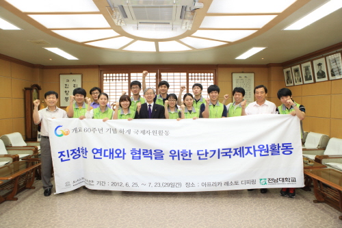 전남대학교 학생들이 개교 60주년을 기념하며 학교와 학생 개인 모두 한 단계 더 높이 도약하자는 각오로 국토대장정 길에 올랐다. 전남대 학생 35명은 26일 오후 국제회의동 용봉홀에서 발대식을 갖고 7월13일까지 18일간의 대장정을 시작했다.