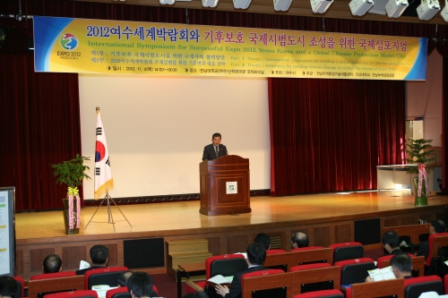 전남대학교(총장 김윤수) 전남지역환경기술개발센터, 여수시, 전남녹색성장포럼, 전남대학교 연안환경문제연구소(여수)는 11월 4일 오후 2시부터 6시까지 전남대학교 여수캠퍼스 산학연구관 국제회의실에서 기후보호 국제시범도시 조기 실현과 성공적인 2012 여수세계박람회 개최를 위한 일환으로 국제심포지엄을 개최했다
