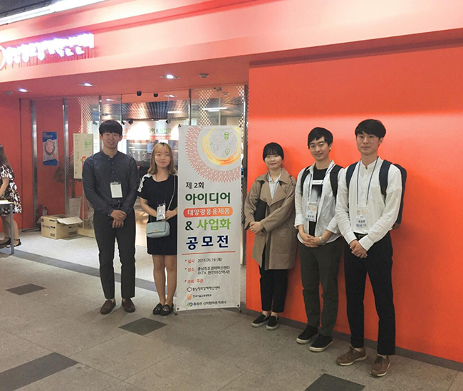 미래창조과학부와 충청남도, 창업진흥원, 태양광산업협회 등이 후원하고 충남창조경제혁신센터가 주최한 이 공모전에서 안수빈 공조성 김하정 이동호 조성준 학생으로 구성된 전남대학교 ‘CEO’ 팀은 ‘태양광 자가발전 녹조 예방 및 수질개선용 수중폭기장치’를 출품, 영예의 우수상을 수상했다.