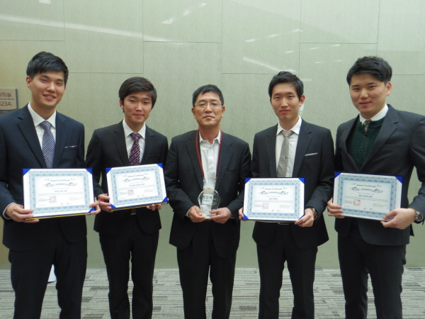 전남대학교 응용화학공학부(화학공학전공) 박준, 김병훈, 심보연, 이은진 학생으로 구성된 PSLAB(지도교수 정창복, 사진 가운데)팀이 10월 25일 대구 EXCO에서 열린 ‘제2회 전국 화학공학 공정설계 경진대회’에서 최우수상인 SK Innovation상을 수상했다.
